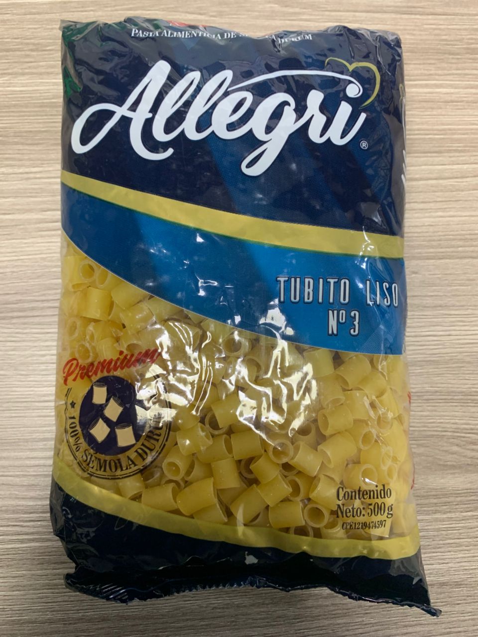 Pasta Allegri Tubito Liso N°3 Cod: 7591181000321 Precio ($) : 1,19 Precio (Bs) : 41,80 |